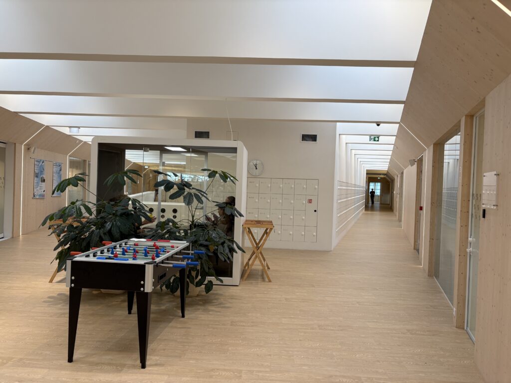 Am ersten Tag bekamen wir eine Führung durch das weitläufige Schulgebäude, welches durch sein ganzheitliches Konzept überzeugen konnte. Neben vielen Glaswänden, zahlreichen Sitzgelegenheiten in den Gängen und Möglichkeiten zur Freizeitgestaltung in den Pausen beeindruckte die Schule auch durch ihre technische Ausstattung. So waren etwa sämtliche Klassen mit modernen Smartboards, ausreichend Steckdosen und integrierten Soundsystemen ausgerüstet. Auch die kleinen Einzeltische, welche mit Leichtigkeit umgestellt werden konnten, um Sitzordnungen zu ändern oder Platz freizumachen, wirkten ausgesprochen sinnvoll. Bereits der erste Tag war mit all dem neuen Wissen und Eindrücken die Reise wert.